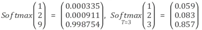 T가 높으면 → 비슷비슷하게, T가 작으면 → 하나만 뚜렷하게 된다.